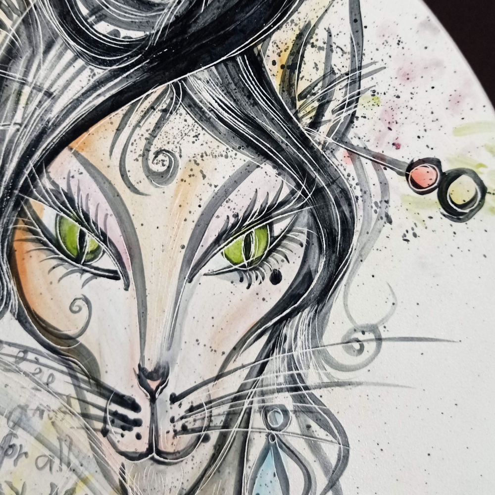 Keramická dekorační malovaná mísa - Kočičí dáma. Po prvním výpalu (přežahu) je na míse provedena ruční malba barevnými glazurami (štětcová malba). Celá mísa je ještě glazovaná transparentní průhlednou glazurou a vypálena na 1050 C° (druhý výpal). Mísa není určena jako jídelní, může sloužit k různým stolním aranžím (ovoce, přírodniny, šperky, koupelnová kosmetika atd.). Mísu můžeme také zavěsit na stěnu (závěs dodáme na přání zákazníka). Glazury jsou zdravotně nezávadné (nákup od certifikovaných výrobců). Autor malby: Helena Augustýnová. Mísa je signovaná. Cena na vyžádání a předání dle dohody (tel.: 606 429 651).